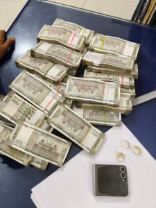 आरोपी के निशानदेही पर उसके कब्जे से नगदी रकम 15,00,000/- रूपये, 03 नग छोटी अंगुठियां, 01 नग मोबाईल फोन को किया गया बरामद।